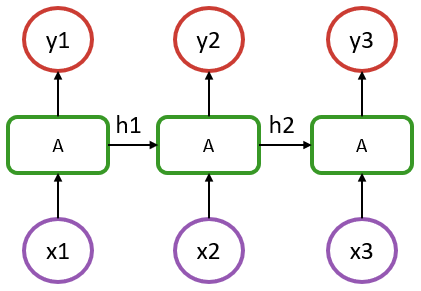 represent the input at each step (could be a timestamp or a word in a sentence), and y1